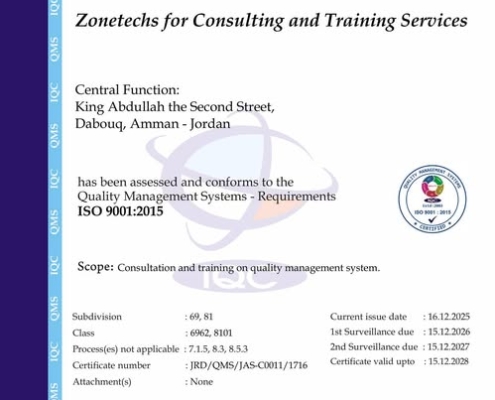 mohamad2026-01-19 21:06:092026-01-19 21:10:19حصلت Zonetechs for Consulting and Training Services على شهادة لنظام إدارة الجودة ISO 9001:2015